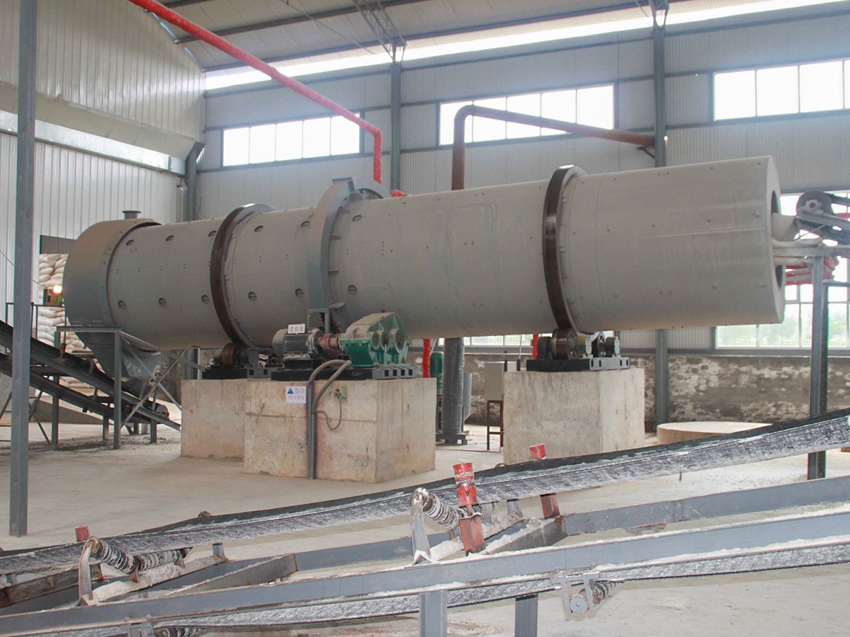 轉(zhuǎn)鼓造粒生產(chǎn)有機(jī)肥成套設(shè)備現(xiàn)場(chǎng)